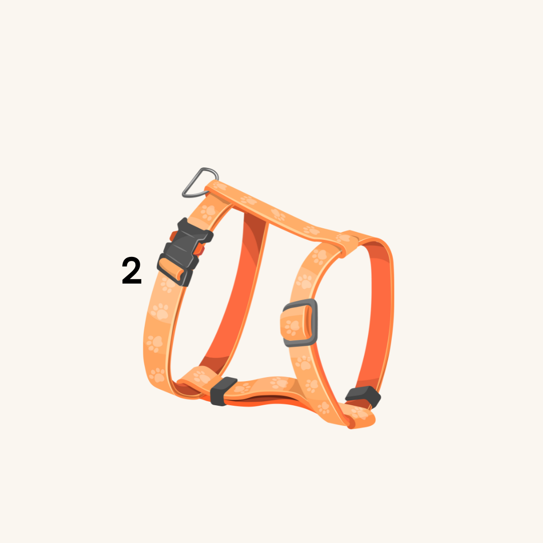 Первая петля регулируется, чтобы вы могли контролировать диаметр ремешка. Это обеспечивает надежную фиксацию на голове и шее вашего питомца, предотвращая удушье или соскальзывание.